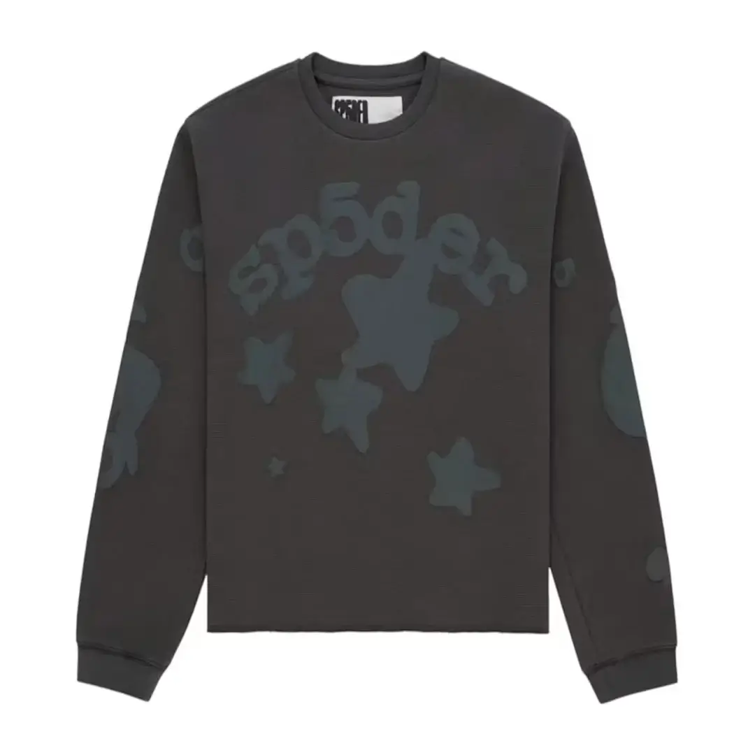 The Sp5der Beluga Thermal Sweatshirt in Slate Grey combines comfort and style with its unique design. This sweatshirt features an eye catching abstract star print in varying shades of grey, blending seamlessly with the deep slate grey fabric. The design captures Sp5der hoodie signature streetwear aesthetic, creating a standout piece for any casual wardrobe.