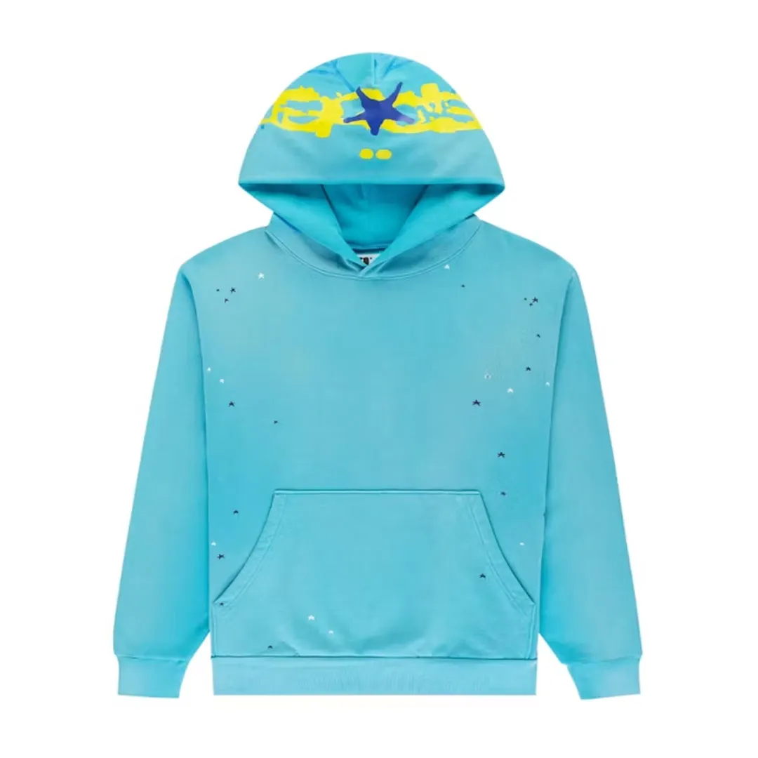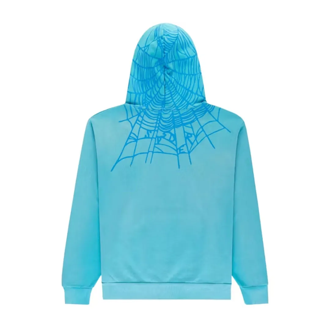 Sp5der Heavy Web Hoodie Cyan