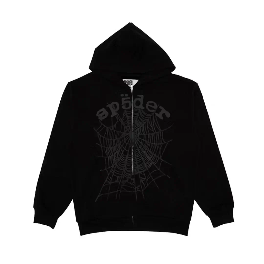 The Sp5der OG Web V2 Phantom Zip Up Hoodie Black delivers a refined take on the brand’s signature web graphic through a subtle, tonal design. Crafted in a deep black colorway, the front features a large spiderweb graphic rendered in a low contrast phantom finish, with the Sp5der logo arched above for a cohesive and restrained look.
