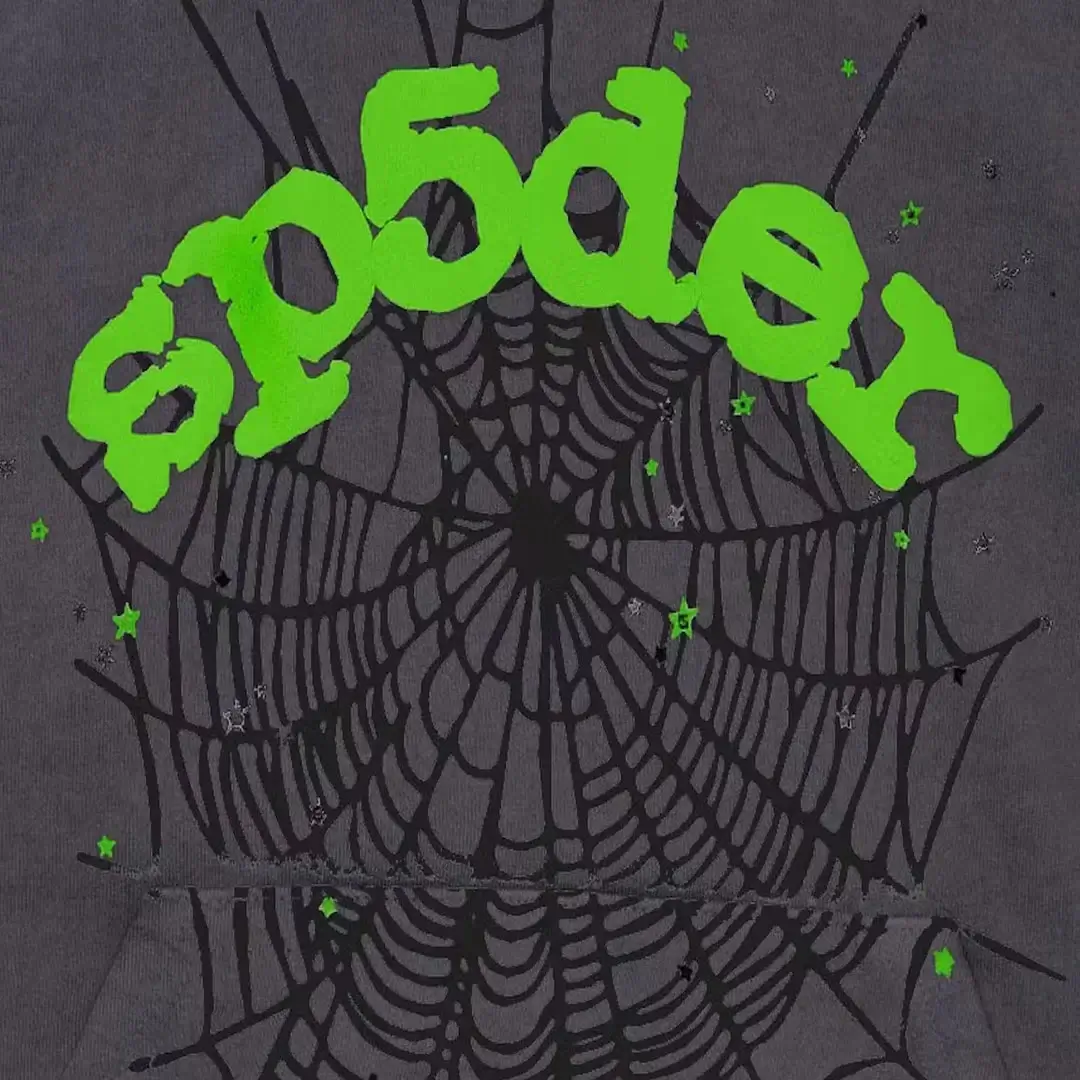 Crafted from high-quality cotton, the hoodie features Sp5der’s signature spider web graphic across the front in a dark contrast tone. Electric Green “Sp5der” branding overlays the web, adding a sharp pop of color. Small star graphics in green, black, and white are placed across the chest, sleeves and left side of the hood, with select stars featuring the number “5” for added detail. The design is finished with a no drawstring hood, a front pouch pocket and ribbed cuffs and hem for a clean fit.